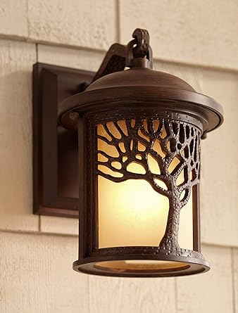 Rustic Outdoor Wall Light Fixture Bronze 9 1 2 Tree Etched Glass Sconce For Exterior House Deck Patio Porch Lighting John Timberland