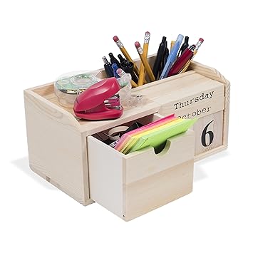 Kid S School Supplies Organizer With Interchangeable Block Calendar Pencil Holder Diy Projects Unfinished Wood Natural