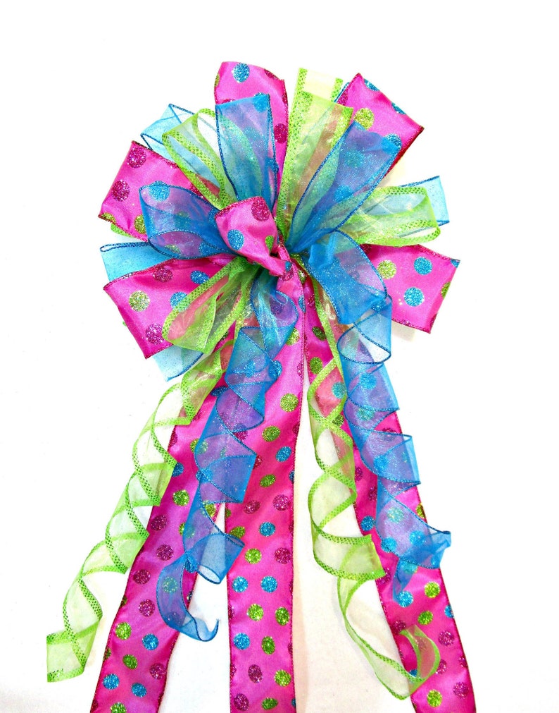 Christmas Bow Tree Topper Bow Christmas Tree Topper Bow Christmas Tree Bow Pink Lime And Turquoise Bow Blue Pink Bow